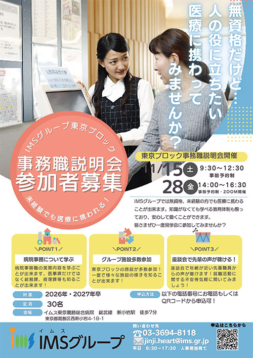 ◎イムス東京葛飾総合病院(東京都葛飾区)にて事務職就職説明会実施予定!!