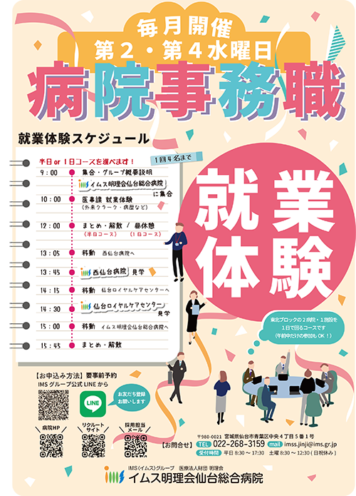 2、(IMS公式LINE又はお電話等にて)就業体験 or 病院見学の参加(任意)