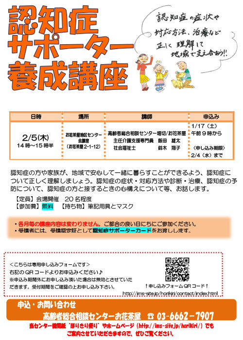 会議室(お花茶屋2-1-12)参加費 無料 申込み 1月17日(土)9:00から電話・メールフォームより申し込みください。 その他