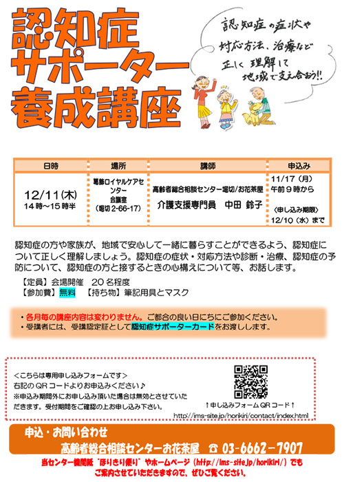 会議室(堀切2-66-17)参加費 無料 申込み 11月17日(月)9:00から電話・メールフォームより申し込みください。 その他
