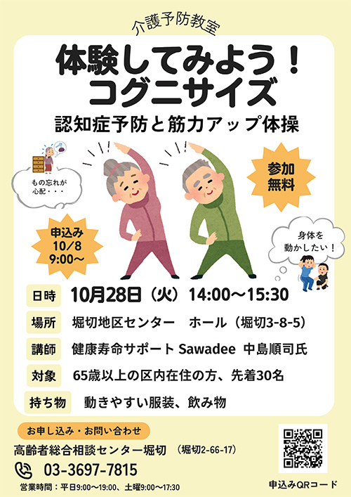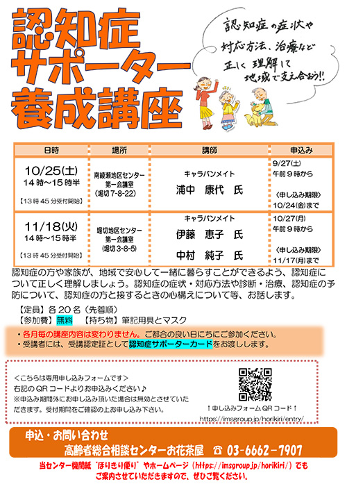 (堀切3-8-5)参加費 無料 申込み 10月7日(火)9:00から電話・メールフォームより申し込みください。 -