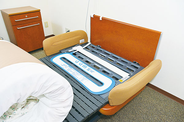 心拍・呼吸・体動・離着床・睡眠の状態などを離れた場所から見守ることができる支援介護ロボットと室内カメラ。入居者さまを24時間見守り、安全・安眠をサポート