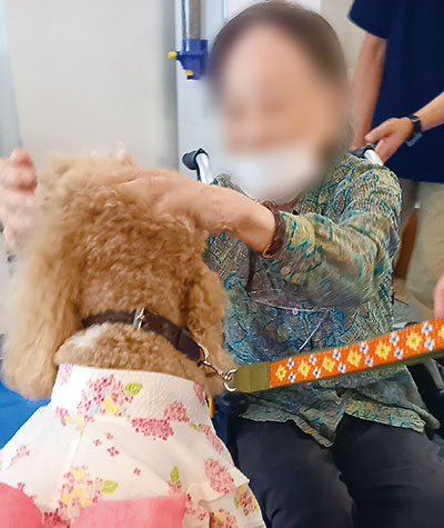 年に3回ほど開催するドッグセラピーは元気のもと。ドッグセラピーの存在を知って入居を決めた方もいる