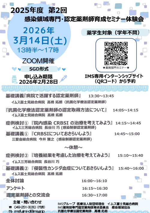 IMS薬剤部専門認定薬剤師育成委員会 感染領域担当