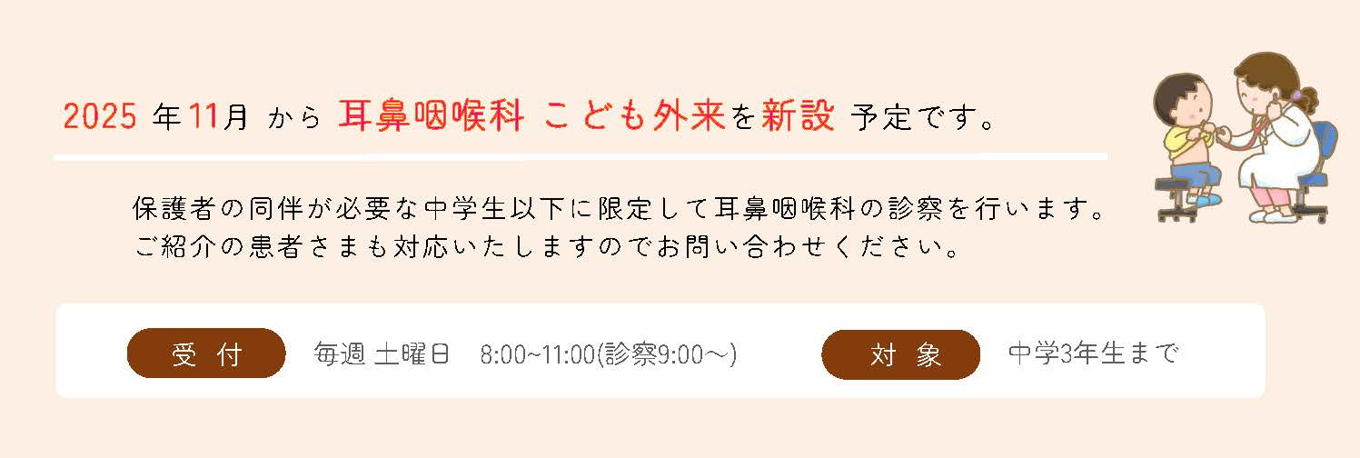 - 耳鼻咽喉科一般、難聴、中耳炎、小児耳鼻咽喉科